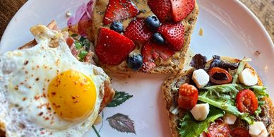 Bacon, egg, avocado, and Gruyere on local sourdough. Served with a Fruit Garnish